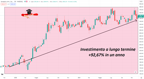 Facciamo un esempio, supponiamo che un investitore abbia deciso di acquistare delle azioni amazon a Dicembre 2020, conservandole per un anno.